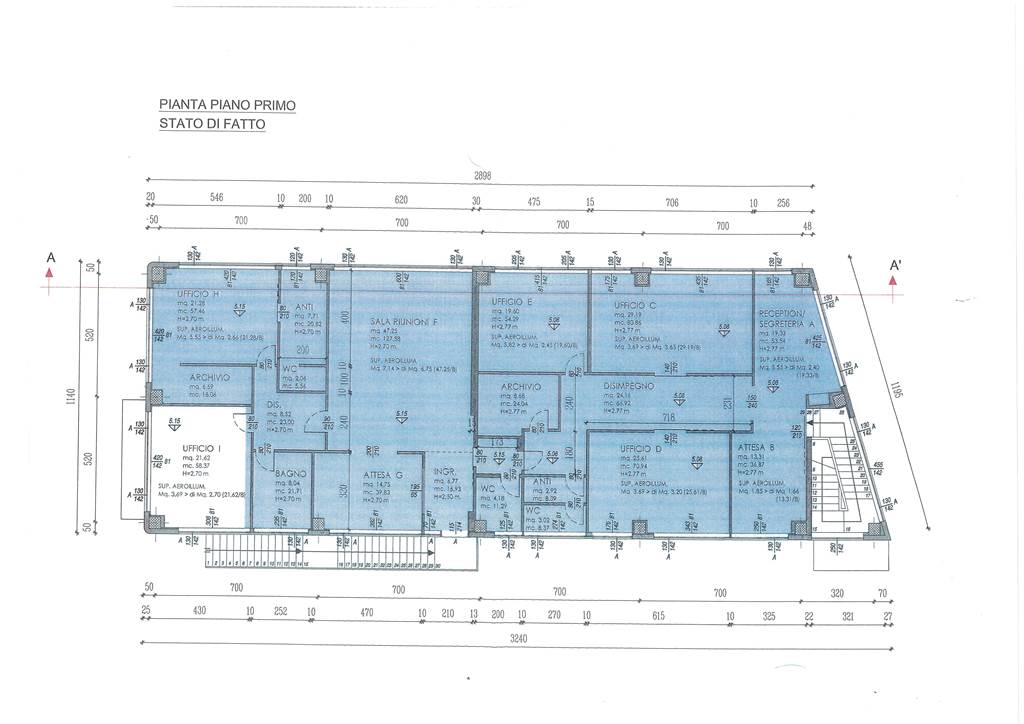 Splendida zona adibita a rappresentanza con uffici , sala attesa, reception/segreteria, archivio , sala riunioni, bagni finestrati, per una superficie di circa mq. 340,00.
