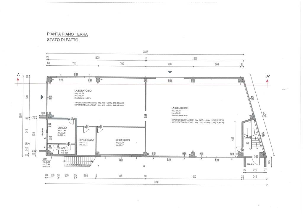 Vano scala per accedere al piano primo per un totale di mq. 340,00 circa