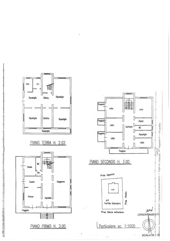 La casa ha una superficie di mq. 175,00 per piano , per un totale di mc. 1.485,55.